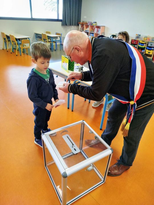 Aujourd’hui, s’est tenue l’élection des délégués de classe. Pour cette occasion, Monsieur le Maire était présent parmi nous. Il nous a expliqué son rôle et ses missions en tant que maire, puis nous avons procédé au vote en suivant toutes les étapes du processus électoral. Chaque élève, muni de sa carte électorale, a déposé son bulletin dans l’urne afin d’élire les délégués. Voici les représentants de l’école en photos !