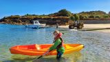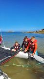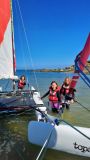 Pour la dernière journée de voile, les CM2 ont profité de bonnes conditions. Le matin, ils ont pu faire du kayak. Un groupe en kayak fermé est allé se balader un peu plus au large. Ils ont fait une belle balade et ils ont pu faire une petite pause sur la plage au nord de l'île Callot. Le deuxième groupe en kayak ouvert est allé jusqu'à la pointe du Cosmeur. Ils ont fait des jeux, ils ont pagayé à l'avant du kayak, à l'arrière, à l'envers... L'activité s'est terminée par une petite baignade sous le soleil. Après le pique-nique sur la plage, le vent s'est levé un peu et les enfants ont pu faire du catamaran pour leur plus grand plaisir. Merci à Fabien qui a pu nous accompagner pour la journée.